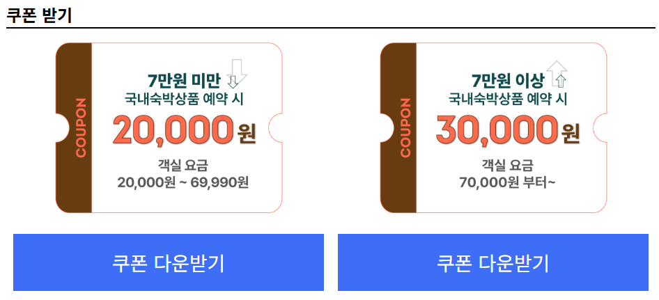 - 7만원 이상 숙박 예약 시: 3만원 할인