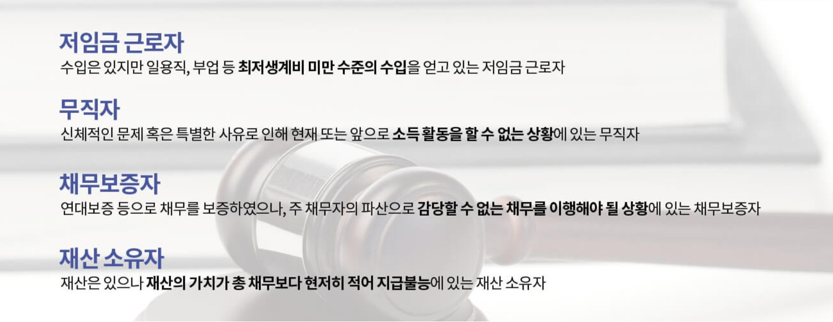 또한 연대보증이나 사채 등 다양한 형태의 채무도 회생 절차를 통해 조정이 가능합니다.