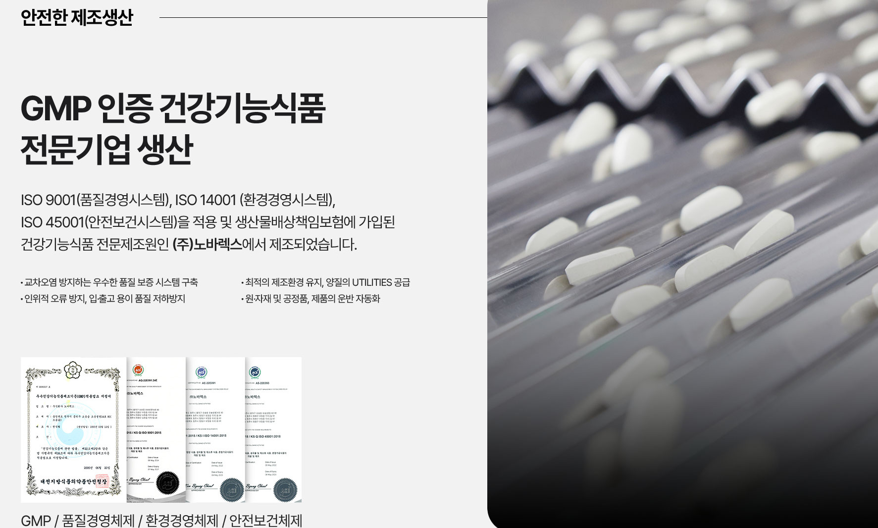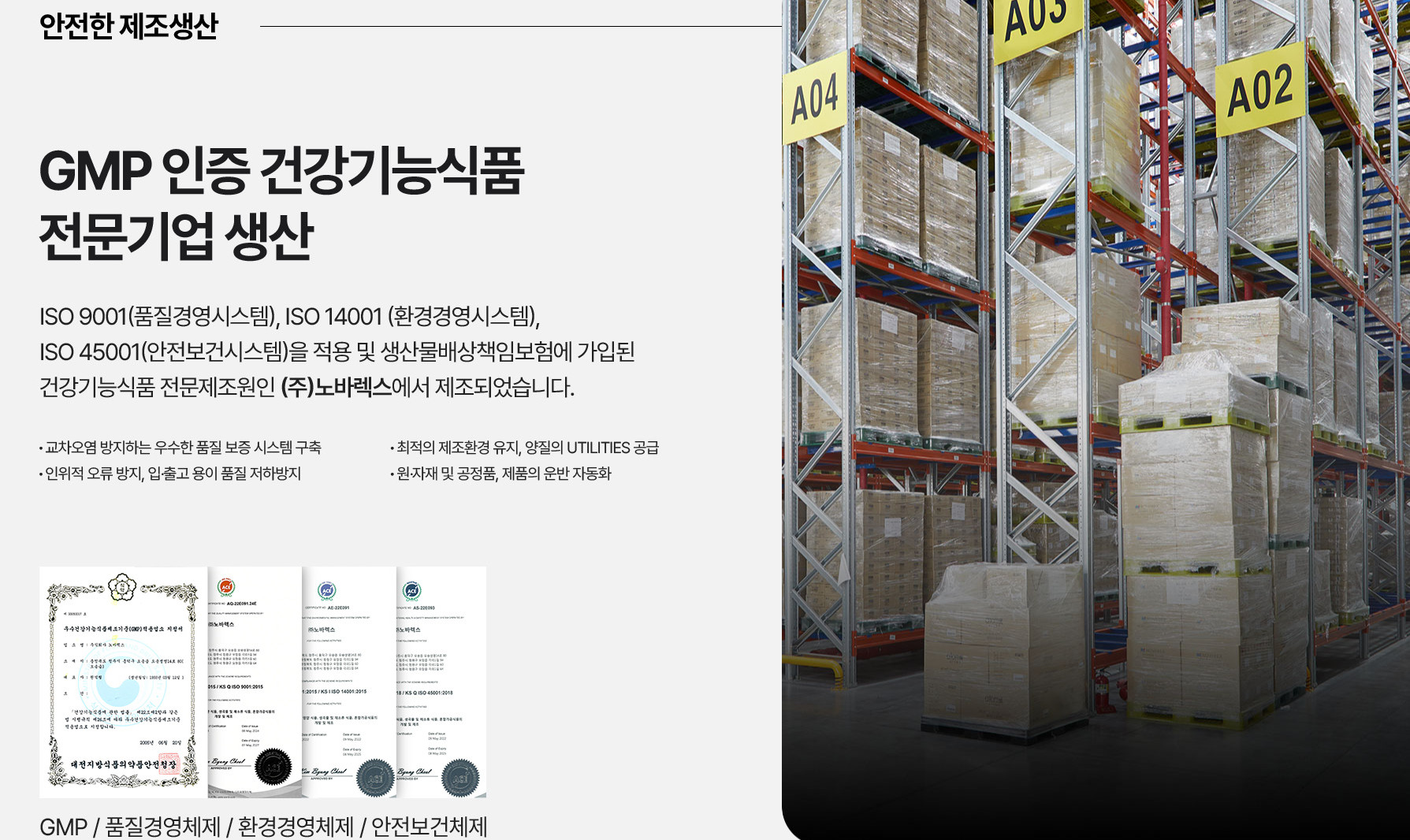 제조 과정도 중요한 요소다. 건강기능식품은 식품의약품안전처의 기준과 제조관리 체계를 충족해야 하며 제조 공장의 인증 여부가 품질 신뢰도에 직접적으로 연결된다. 우수제조관리기준을 충족한 공장의 경우 품질경영체계와 환경경영체계 등 여러 인증을 동시에 갖추고 생산 과정을 관리한다