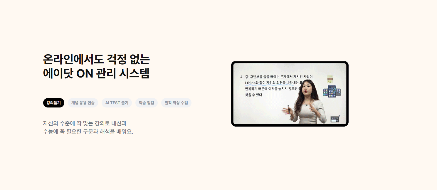 여기에 개별 진도 관리, 맞춤형 문제 제공, 1:1 피드백이 결합되면 온라인 학습은 단순 인강 이상의 효과를 만들어낸다.