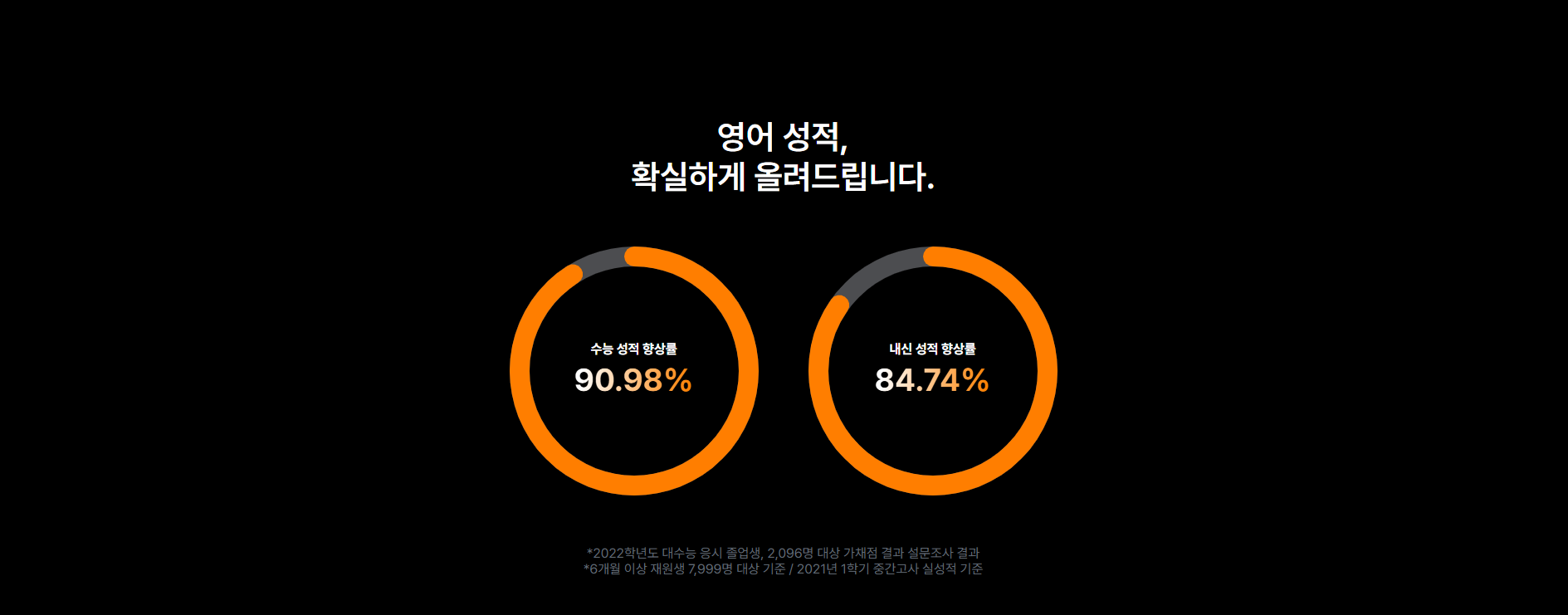 일정 기간 학습한 학생들의 영어 점수가 평균적으로 상승했고, 실제 점수 상승을 경험한 학생 사례도 다수 존재한다.