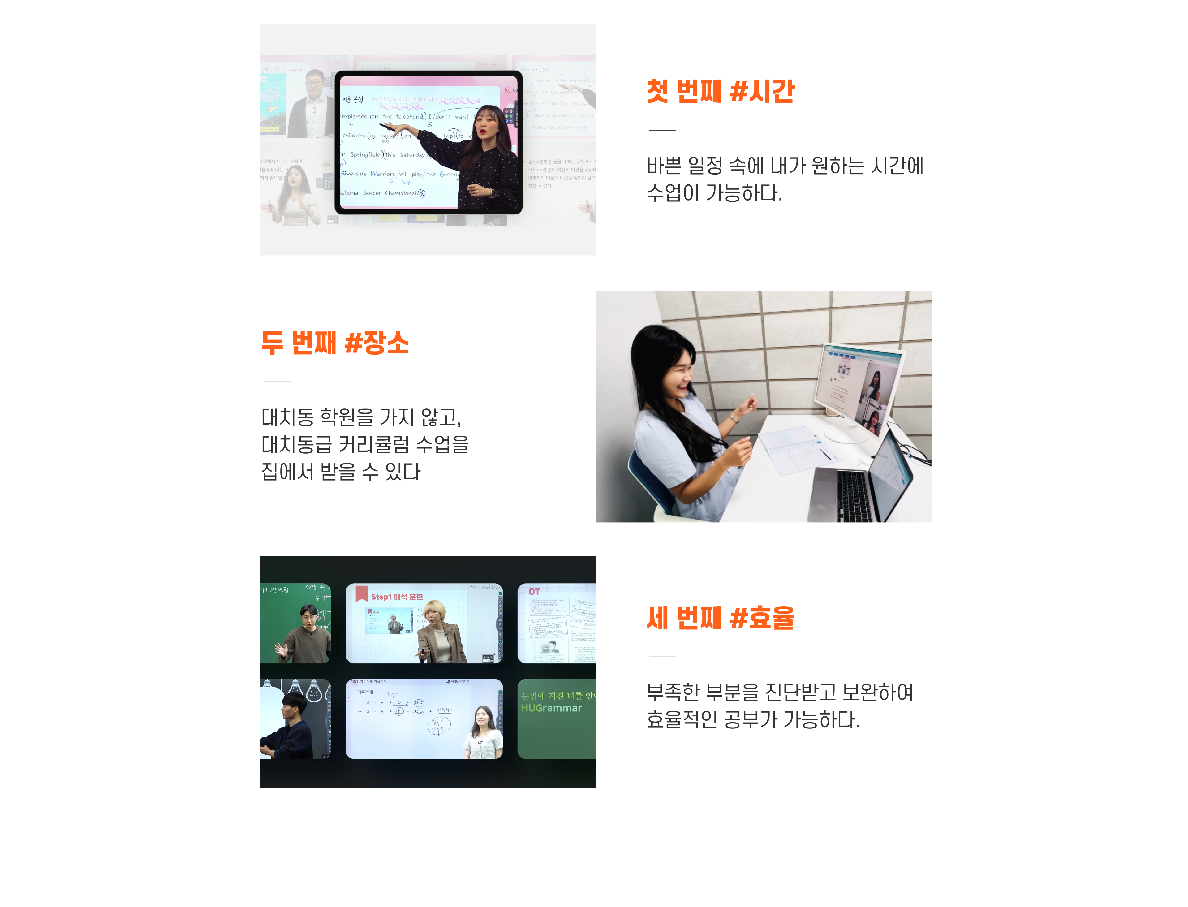 정해진 시간표에 얽매이지 않고 개인 일정에 맞춰 수업을 조정할 수 있어 학원 이동이 어렵거나