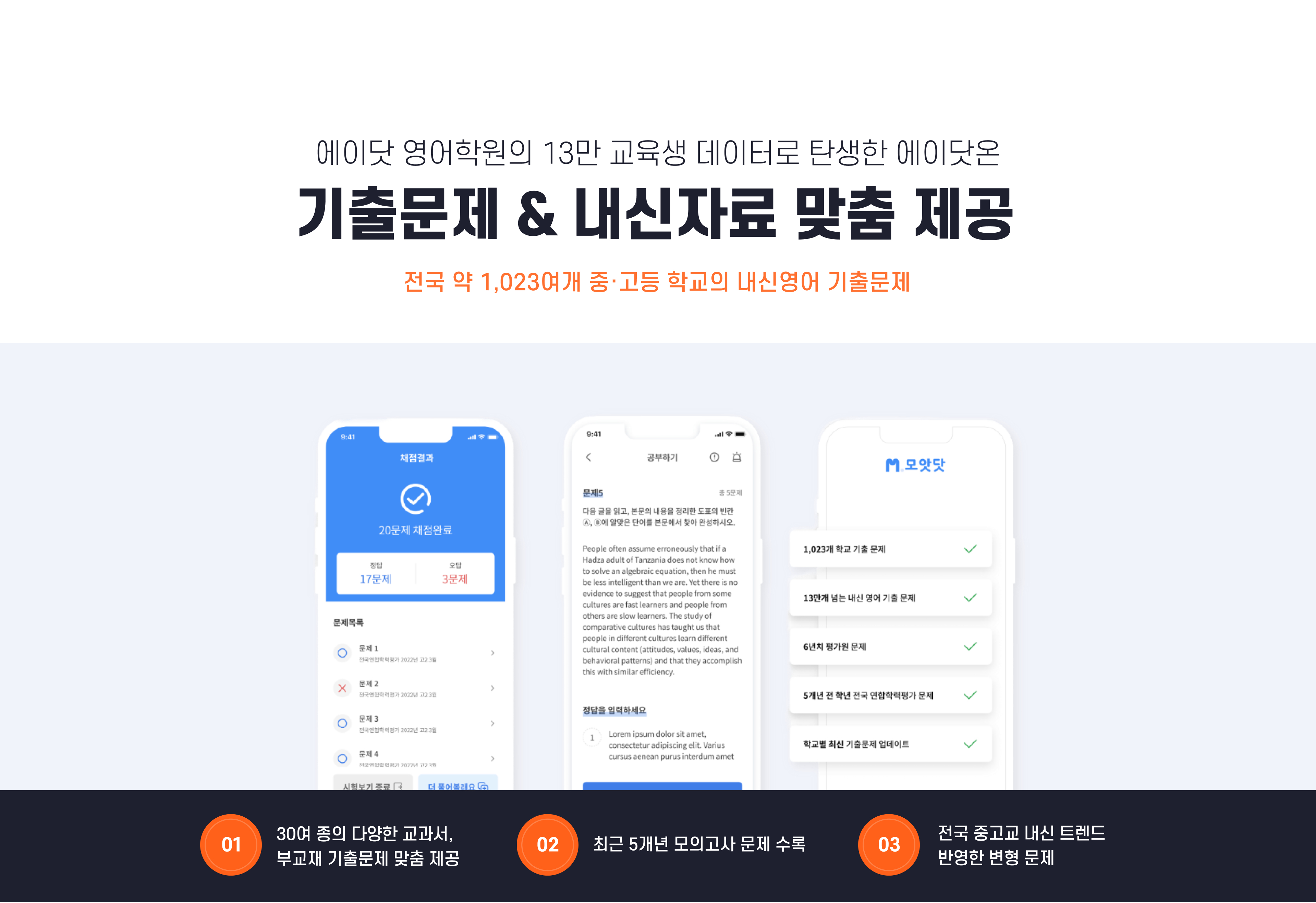 전국 학교 내신 흐름을 반영한 자료 제공과 개인 맞춤형 진도 관리 삼중 관리 시스템을 기반으로