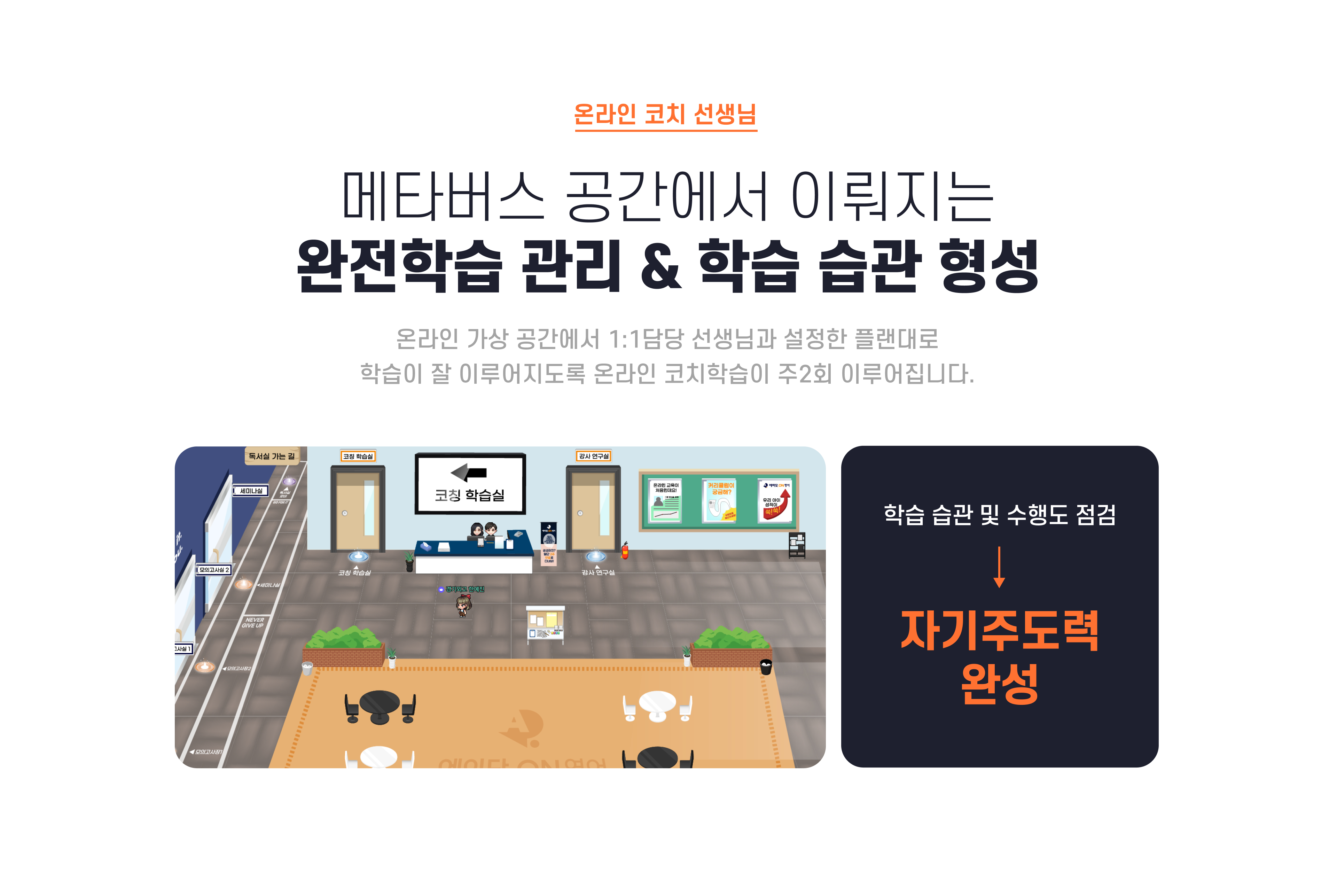 메타버스 기반 온라인 코칭 수업은 주 2회 진행되며 계획 실천 여부와 학습 태도를